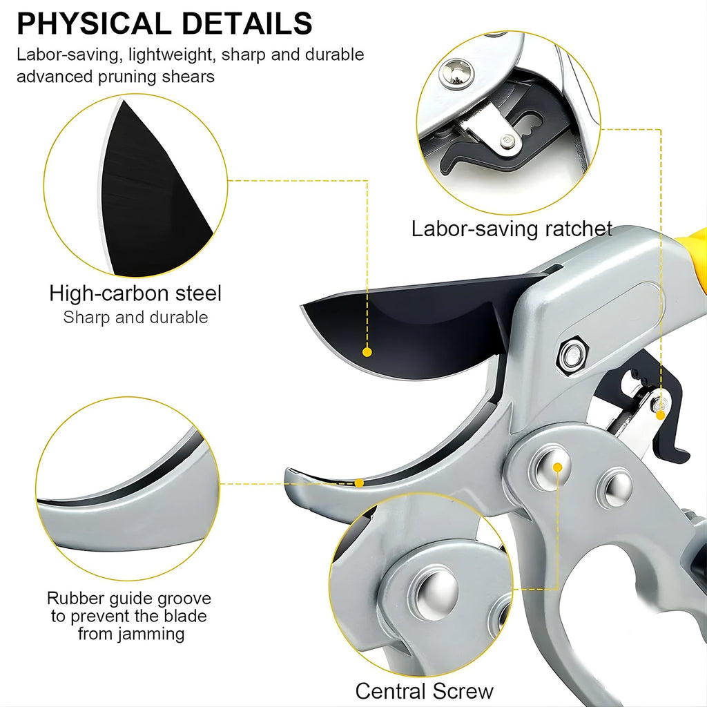 - MUST HAVE GARDENING TOOLS – Ideal for people of all ages, these ratcheting pruning shears (heavy-duty) are essential gardening tools for weak hands, elderly or people with arthritis! Why should only mom or dad tend to the garden? PAIN-FREE PRUNING – Don’t let your aching joints and weak digits stop you from pruning away dead branches, overgrowth, or unsightly weeds! Thus saving you both time and energy while pruning your plants!